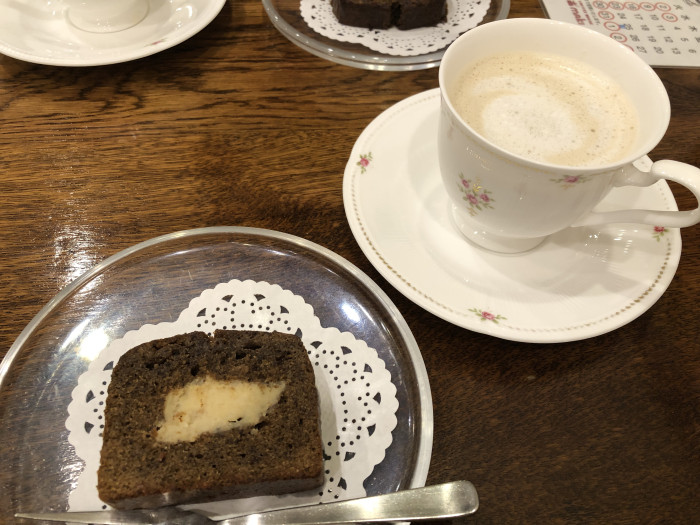 カフェオレはミルクたっぷり。パウンドケーキも素朴な美味しさでほっこりできました。