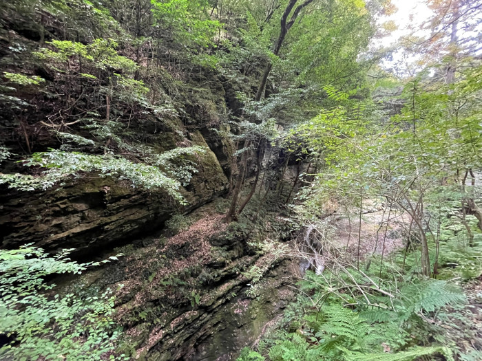 とにかく参道のかなり下方を流れる川の音、鳥の声、風で揺れる木々の音を聞き、川岸の断層を見ながら進みます。タモリさんのように断層マニアなら楽しめそうな参拝道です。