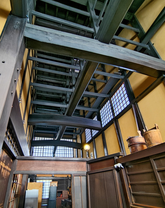 現在の建物は、元治元年(1864)の大火で焼失した後、明治3年(1870)に再建されたもので、表に店の間があり、奥の主屋の建物を玄関棟がつなぐという「表屋造り」になっています。