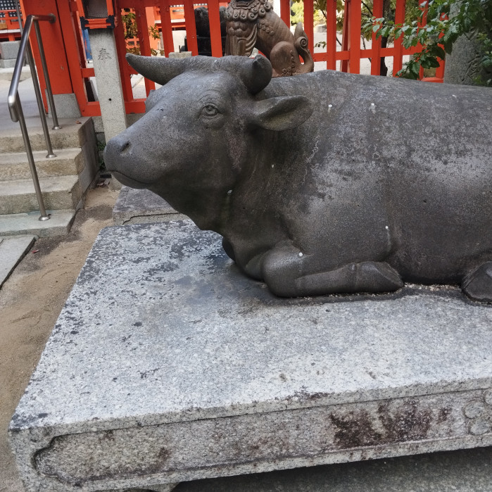 こちらの神社は穏やかな顔をした牛の石像が迎えてくれます。