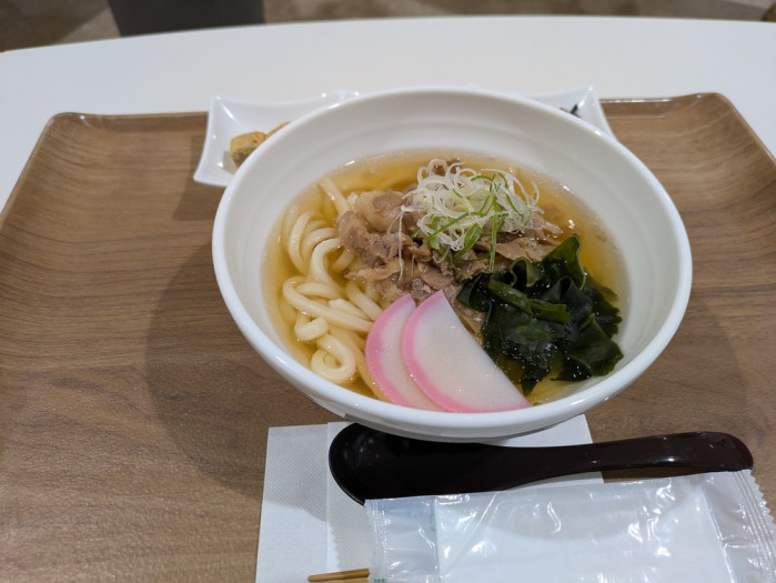 ひと通りの項目が終わると、最後にあたたかい肉うどんをサービスで出していただきました。何も食べずに来ていたので、やさしいだしの味と、甘く煮たお肉がじんわり体にしみます。朝いちばんで、ほっと力が抜ける時間でした。