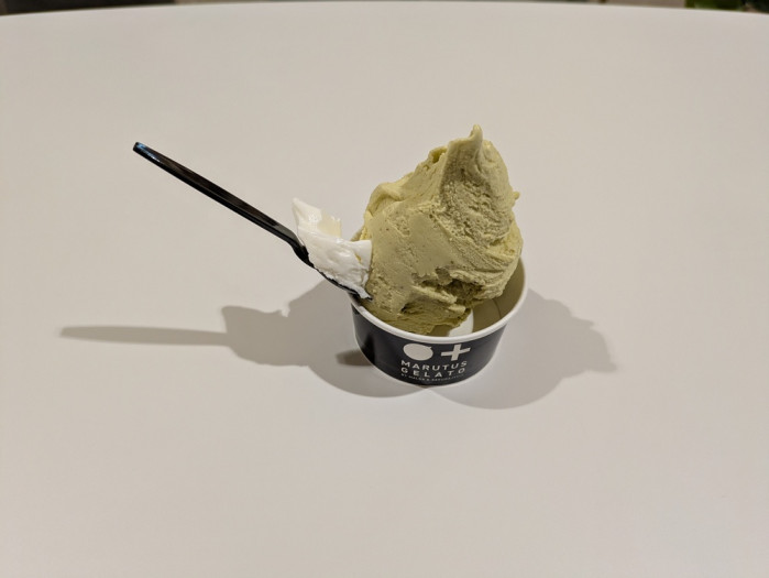 さらに、検診を受けた人には館内のジェラート店で使える割引券もプレゼントされます。せっかくなので、普段は選ばない「グランピスタチオ」というフレーバーに挑戦してみました。香ばしいピスタチオの風味とカリッとしたナッツの食感がしっかりしていて、小さなカップなのに満足感があります。世界一のジェラート職人・柴野大造さんが監修しているそうで、健康診断の帰りとは思えない、ちょっと贅沢な気分になりました。