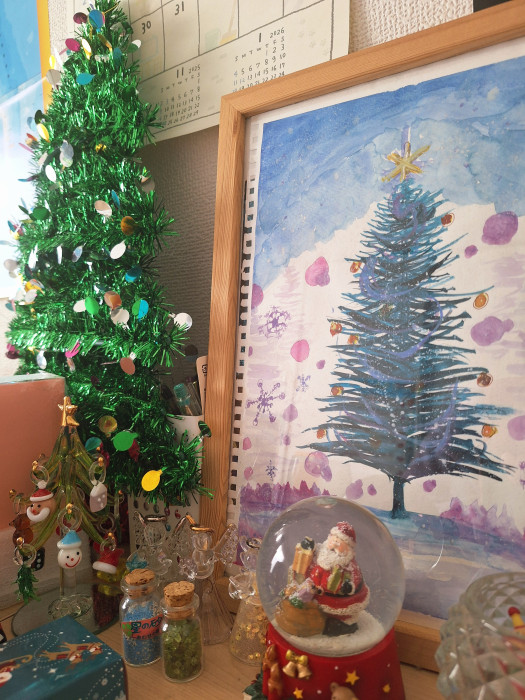 クリスマス仕様になった部屋。