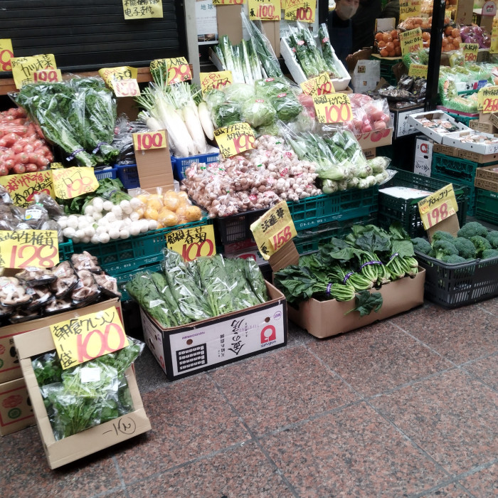 お店の人の最高の笑顔。そして地元を支える土台としてこの金額で頑張っているなんて!物価高の今の世の中に、この野菜の値段は素晴らしい!