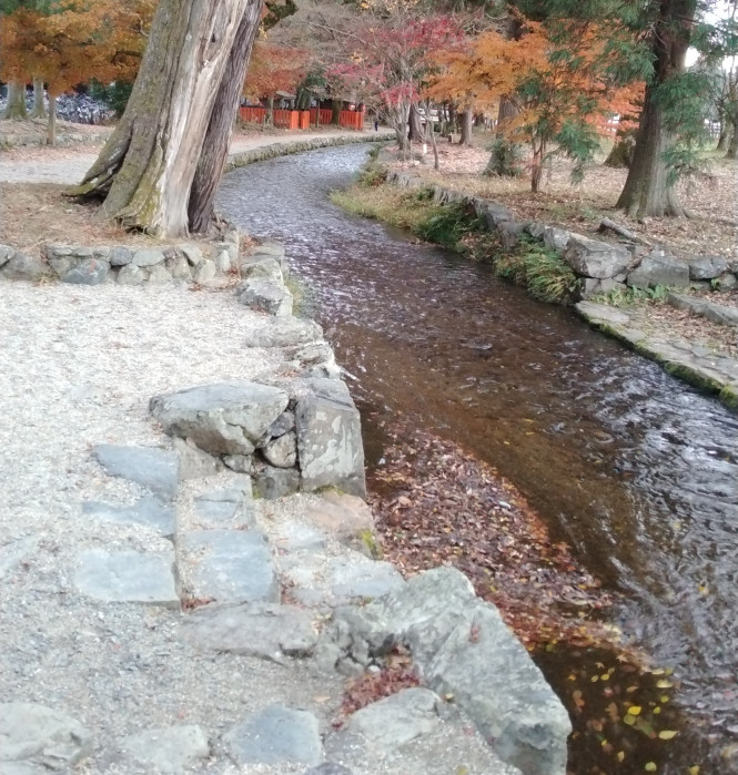 参道の東側には「ならの小川」と呼ばれている、散歩におすすめの川があります。