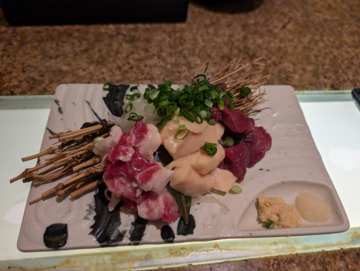 贅沢な馬刺し3点盛り。どれを食べても美味しかったです。