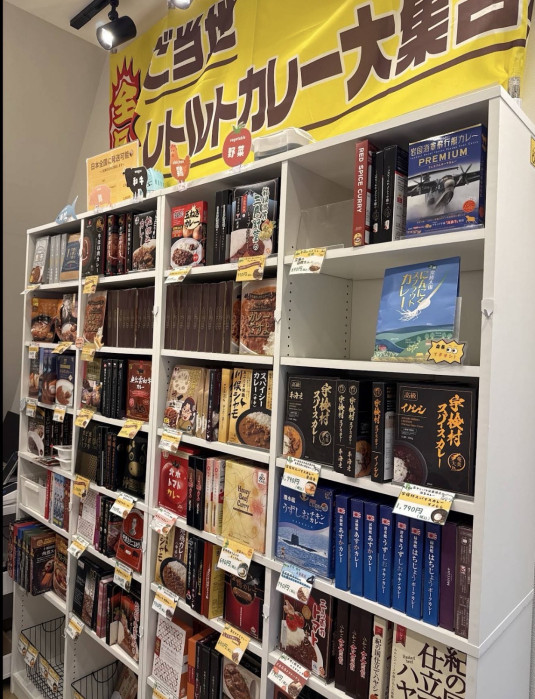 神保町店は写真のように、本棚にある本の代わりにレトルトカレーが並んでいるような感じでした。