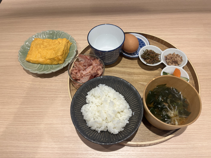 看板メニューは、たっぷりの鰹節をごはんにのせ、自分好みに仕上げていく定食スタイル。湯気の立つごはんの上で、ふわふわの鰹節が踊り、そこに卵や醤油を合わせると、香りと旨味が一気に広がります。シンプルながら、素材の良さが際立つ味わいで、毎日でも食べたくなるやさしさがあります。