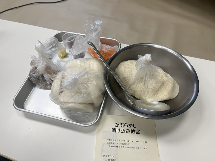 金沢学生のまち市民交流会館で行われた「かぶらずし教室」に参加してきました。今回は小学生と一緒に体験するワークショップ形式。