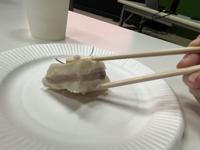 教室のはじめには、北陸学院大学・発酵食研究所の方によるミニ講座があり、発酵とは何か、麹の働き、かぶら寿しがどのようにして生まれたのかを分かりやすく解説してくださいました。難しい話ではなく、子どもにも伝わる言葉での説明だったのが印象的でした。