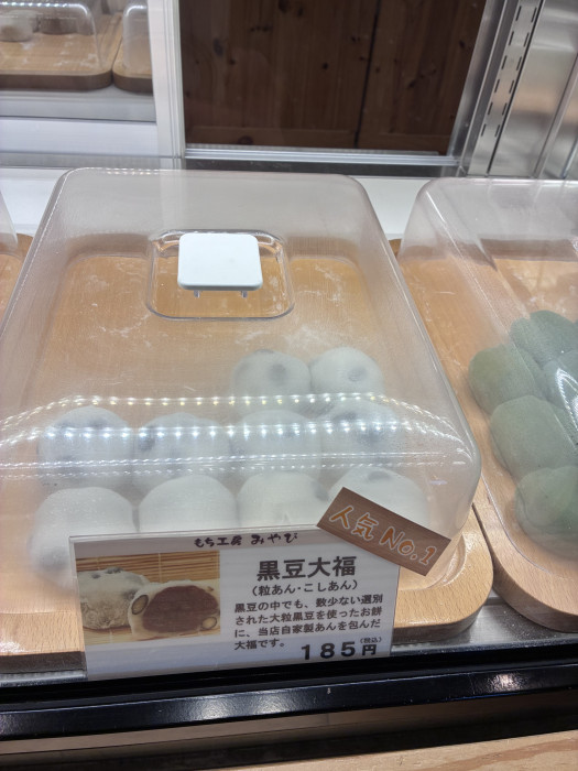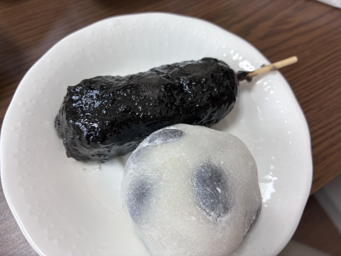 定番の胡麻ダレ団子と黒豆大福を買ってみました。団子自体が大きめで食べ応えたっぷりの上に、たっぷり乗った胡麻ダレが病みつきになる美味しさでした。