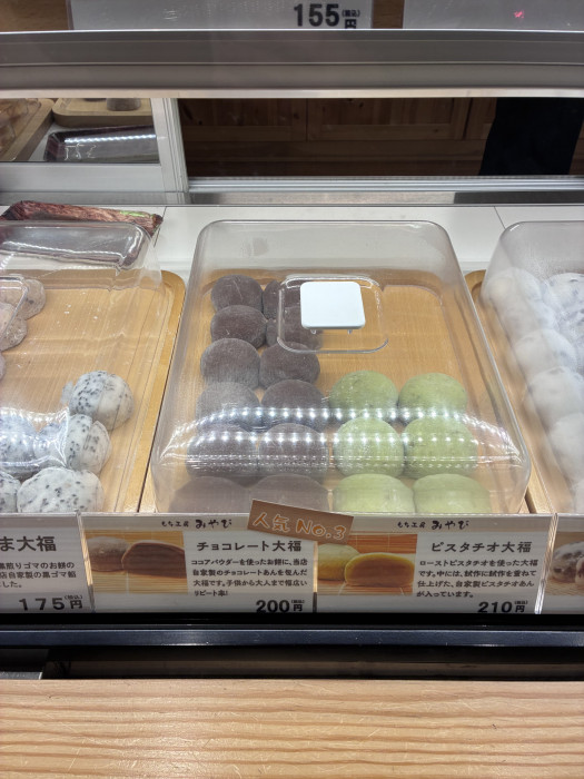 豆大福やよもぎ大福といった定番商品から、フルーツ系やピスタチオ大福など一風変わった餅菓子も取り揃えられています。
