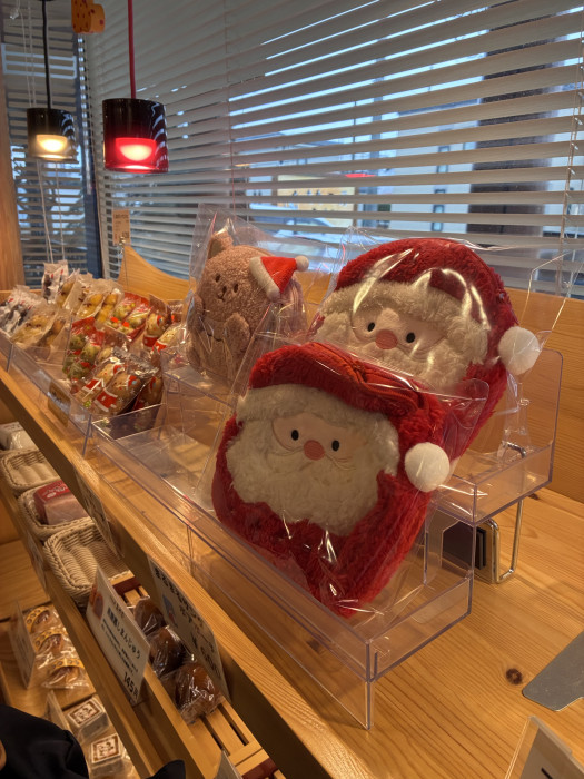 クリスマス用のポーチが目を惹きます。洋風の焼き菓子、マドレーヌやサブレなども販売されていました。その他には、稲荷寿司やおこわ、お赤飯などのサブメニューの品数も豊富でお客さんの目と心と舌を楽しませています。