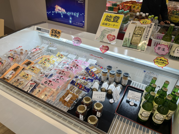人の暮らしと海が近い能登らしい風景や文化を、食と買い物を通して感じられます。館内の売店には、能登の海産物を使った加工品や地元菓子、調味料などが並び、お土産選びにもぴったり。旅の途中で「能登らしさ」を手軽に持ち帰れるのがうれしいポイントです。