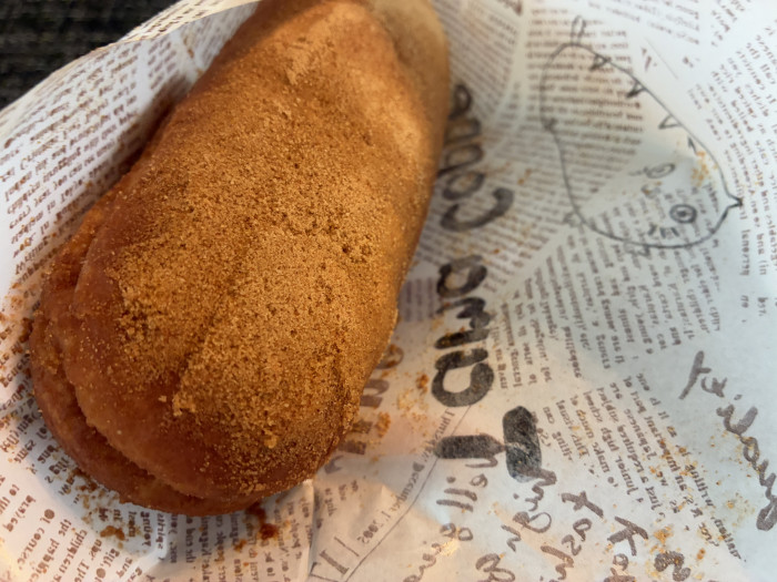 毎度欠かせない、きなこ揚げパンも。あんバターコッペはすでに完売でした。訪れたのは12時ごろで、コッペパンが並んでから1時間ほどでしたが…すでに半分ほど売れていました。おかず系もおやつ系もあり、サイズ感と片手で気軽に食べられるのもちょうど良いんですよね。今回はテイクアウトしましたが、イートインコーナーと、ドリンクメニューもあります。