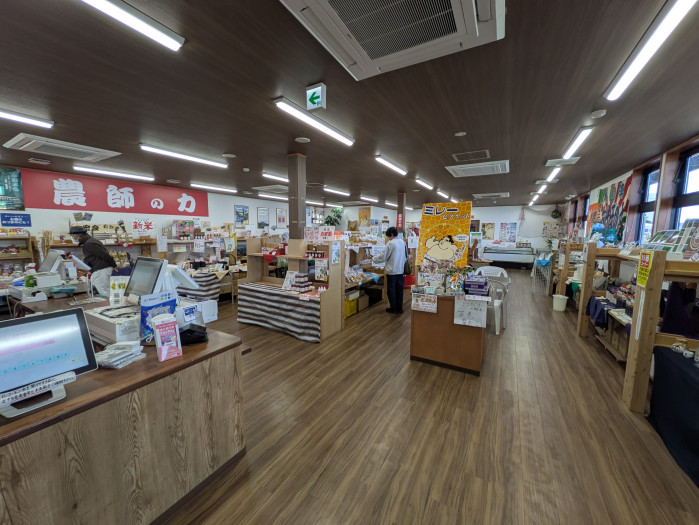 1階は地元の魅力がぎゅっと詰まった地産品直売所。朝採れ野菜や旬の果物、地元ならではの加工食品が並び、生産者さんの顔や思いが感じられる温かな空間です。規格外品も含め、その土地の“今”をまるごと楽しめるのがうれしいところ。将来的にはジャムやワインの加工も予定されており、ここから新しい益田の味が生まれていくと思うとワクワクします。