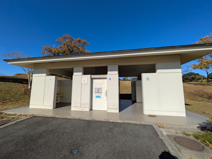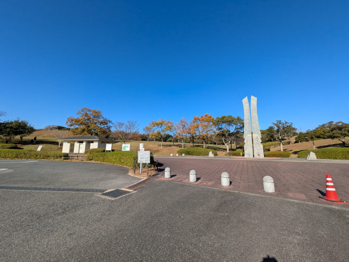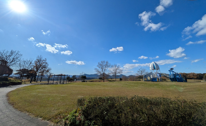 園内には歩きやすい園路や、飛行機の機体をモチーフとした子ども向けの遊具もあります。さらに休憩用の東屋が点在しており、散歩を楽しむ人や、子どもたちの姿も見られ、地域の憩いの場として親しまれている様子が伝わってきました。芝生に腰を下ろして過ごすひとときは、ありがたい休息時間です。