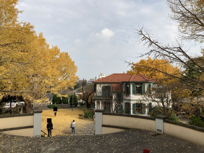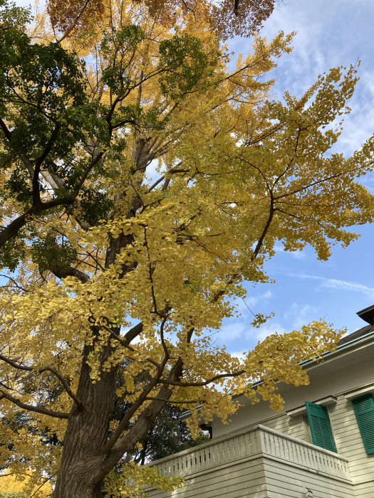 山手西洋館で開催された企画『世界のクリスマス2025』を見に山手に訪れると、そこかしこで銀杏が黄金に輝いていており、その美しさに目を奪われました。