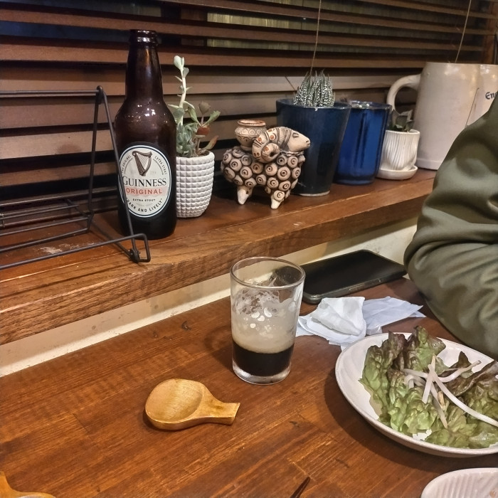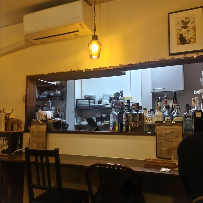 テーブル席が2つ、あとはカウンターがあります。年末でしたのでグループが来られて賑わっていました。店内おしゃれだし