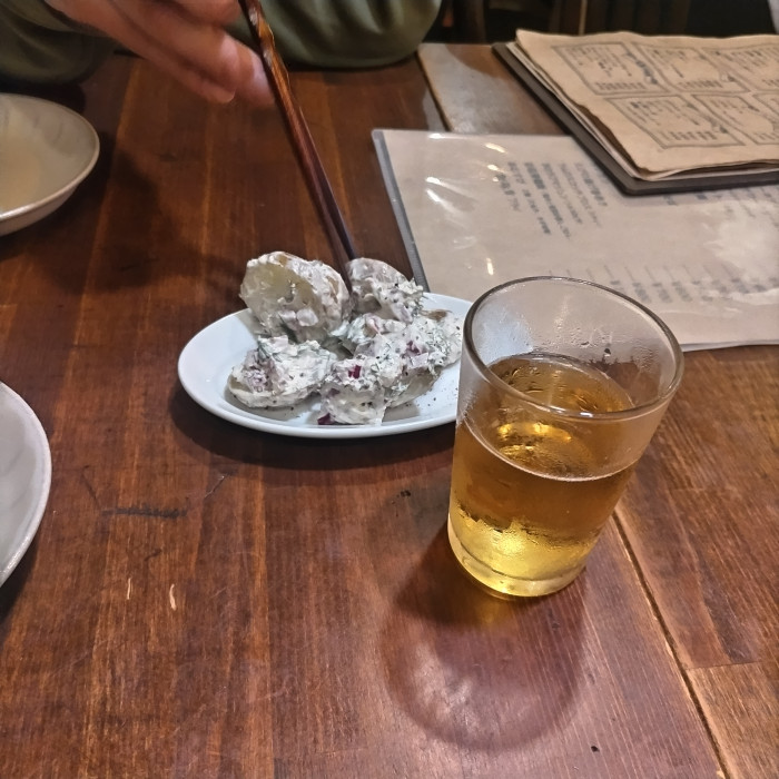 じゃがいものサワーソースのかかったサラダ美味しかった。お一人でされてるので
