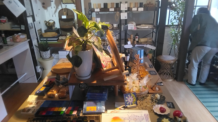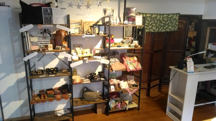 1Fは受付かつ雑貨コーナー。2Fはブックカフェになっています。カフェでは写真展など各種イベントも行っています。