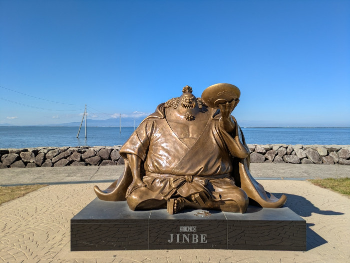 すぐ近くにある ジンベエ像 の存在とつながって、「知らないうちに、地元がワンピースの街みたいになっていたんだな」と、少し可笑しくなりました。