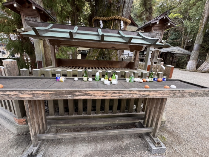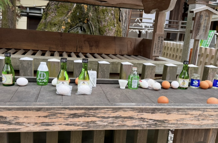 大神神社では親しみを込めて“巳さん”と呼ばれていて、卵やお酒が供えられているのは、巳さんの好物だからです。