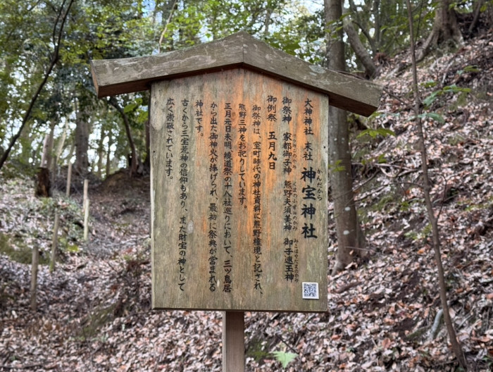 毎年1月1日未明に行われる大神神社の大祭「繞道祭(にゅうどうさい)」では、御神火が松明に移され境内の摂末社19社を巡るのですが、その御神火が最初に捧げられるのが神宝神社だそうです。