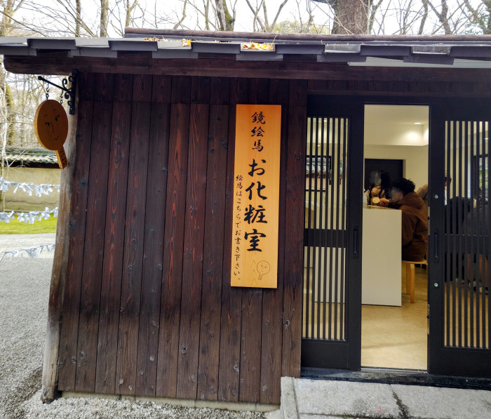 境内には鏡絵馬お化粧室もあり、その中で鏡絵馬にメイクをします。