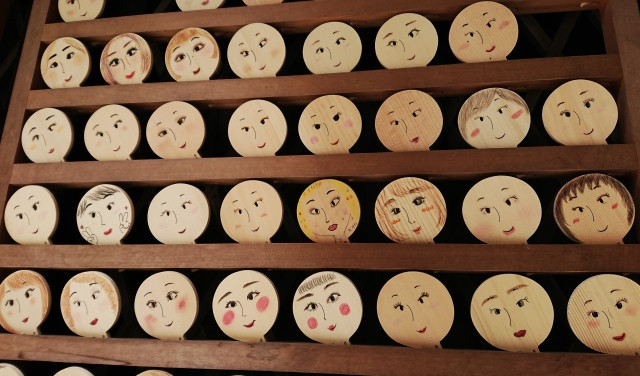 河合神社の鏡絵馬は手鏡の形をしていて、そこに描かれている顔にお化粧を施し、裏に願い事を書くという珍しいものです。