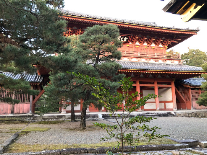 金毛閣(きんもうかく)と呼ばれる赤い三門。2階は千利休が増築したのだとか。