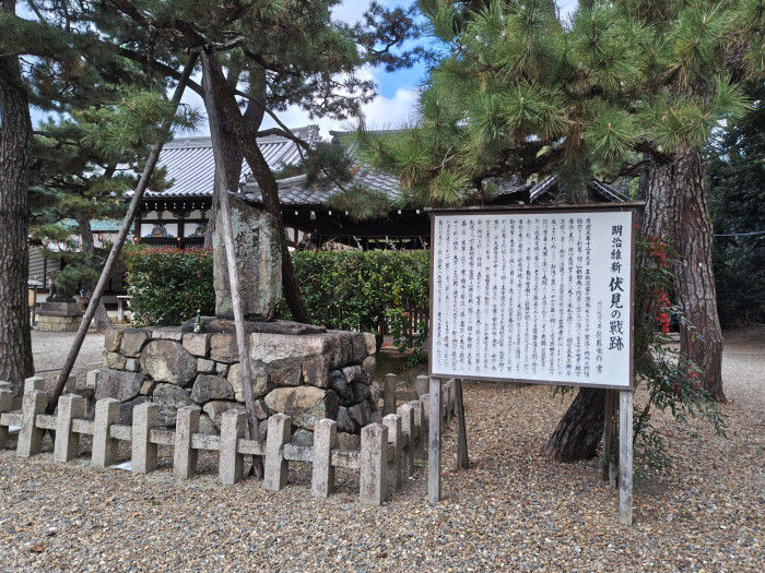 御香宮神社は、幕末の鳥羽伏見の戦いでは薩摩藩の本陣となった場所でもあり、境内にはそれを示す石碑も立っています。