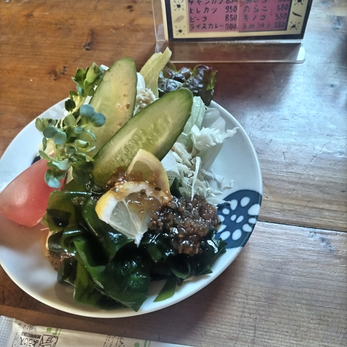 お客さんが多いときは少し待つかもしれません。先にサラダがきましたが