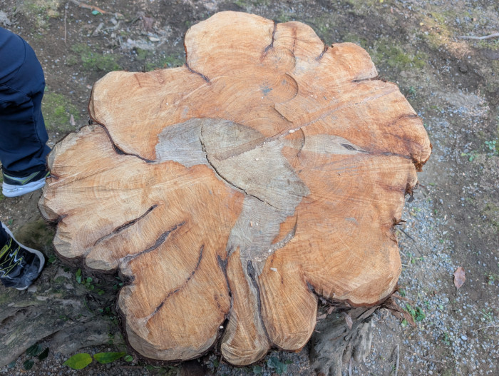 参拝を済ませて、振り返ると切り株が祀られていました。