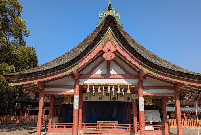 鳥居もそうですが、何だか京都の平安神宮を彷彿させるような桧皮葺の建物に、神聖なる格調高い由々しき神社を表しているようです。