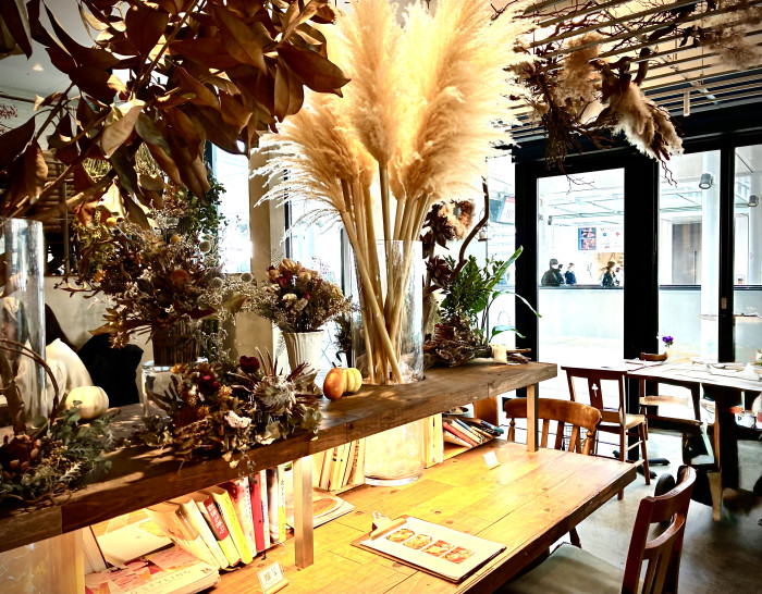 ベーカリーカフェと花屋が融合したユニークなカフェ