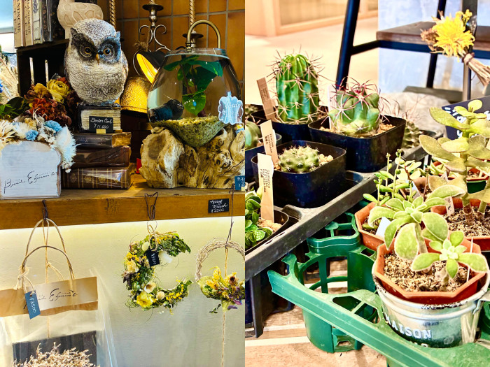 花で作られたアート作品や、サボテンなんかも購入可能です。