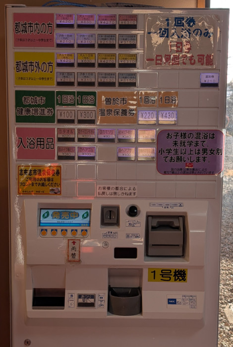 家族風呂も隣接されていて、そちらもたまに利用しますが、子供が水風呂に入りたがるので、今回は大浴場に入りました。事前に、券売機でチケットを買います。