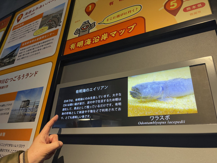 隣県の、佐賀の自然や生態についても詳しく掘り下げられていました。実際に魚たちも展示されています。干潟エリアはまた独自の生き物がいるので、興味深そうに眺める人も多かったです。