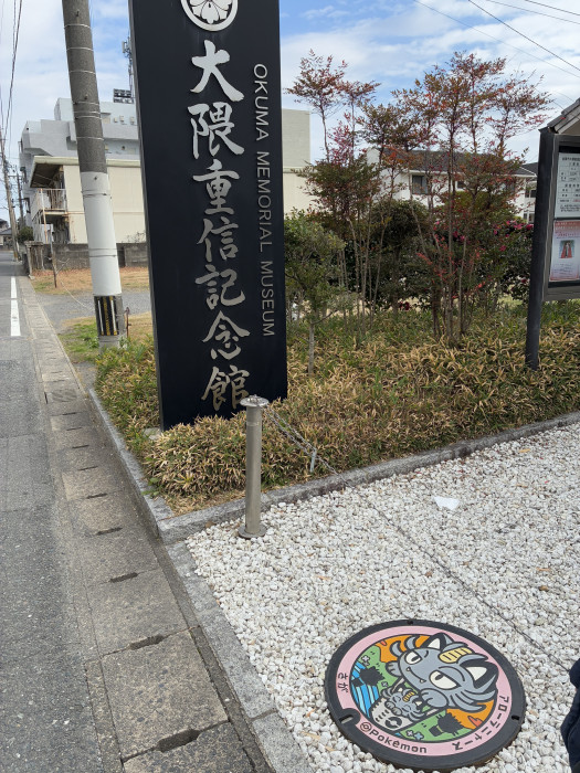 辿り着きました!こちらは、大隈重信記念館の入口です。知らぬ人はいないであろう、世界的政治家の偉人、大隈重信が生まれたのは佐賀県。施設では資料や過去の功績などが展示されています。こうした施設の近くだと、旅行客も観光のついでに立ち寄ることもできますね!訪れた日は休館日、月曜日。辺りは静かでした。