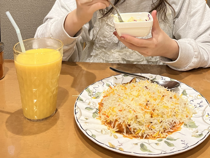 エビビリヤニとマンゴーラッシーも、まちがいのないセットでとても美味しかったです。