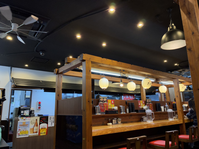 中は仕切りのあるテーブル席のほか、屋台風のカウンター席も。