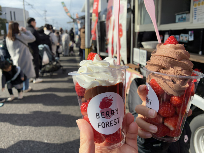 こちらは鳥栖市、佐賀市久保田町にいちご農園を持つ、「ベリーフォレスト」のキッチンカー。いちご狩りがお得になる券をいただきました♪