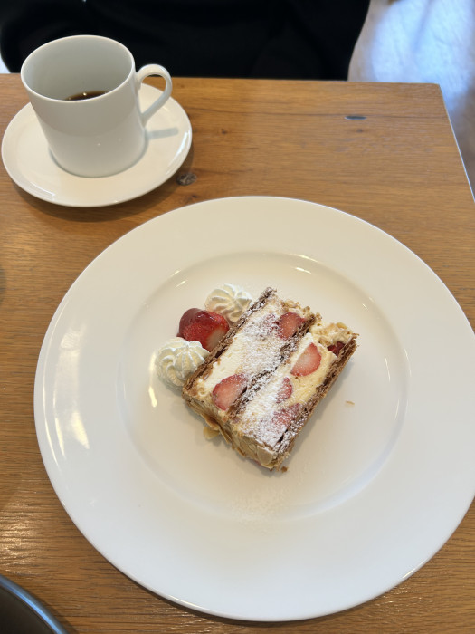 カレーのスパイシーさやお肉のうまみもとてもおすすめポイントです💘念願のナポレオンパイは、さくさくパイ生地はもちろん、いちごが甘く、クリームは甘すぎない低脂肪乳のような、なめらかで高級なお味でした🐮🥛🍓