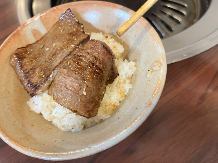 口コミでも多く聞かれる「赤身が本当においしい」という声に深くうなずいてしまいます。能登牛の上カルビ。脂は甘く、しつこさがない。「年齢を重ねても、思わずおかわりしたくなる」そんな声も聞かれるほど納得の味わいでした。自家製のタレが肉の主張を邪魔せず、旨みを引き立てる控えめな仕上がりがまたご飯が進むのです。