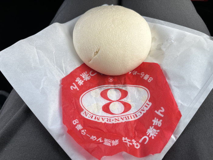 そして注目は、ローソンとの初コラボ商品「8番らーめん監修 牛もつ煮まん」。