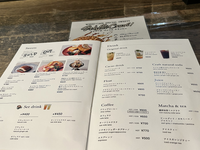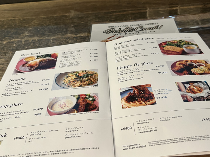 ワイアードカフェに入ったのは初めてだったのですが、ドリンク、フードメニューもともに豊富で、丁寧な写真付きメニューについ見入ってしまいました。