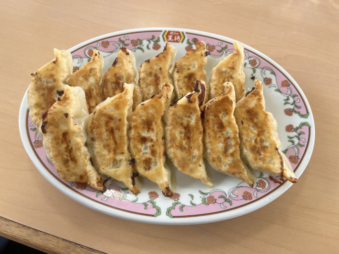 看板の餃子は、香ばしく焼き上げた皮とジューシーな餡のバランスが絶妙で、注文してから焼いてくれるので熱々です。各店で仕込みを行っているため、地域ごとの微妙な個性を楽しめるそうです。お持ち帰りもできるのも王将ならでは。