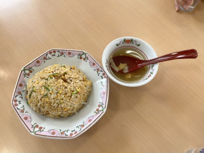 チャーハンにはスープが付きます。パラパラして食べやすいチャーハン。