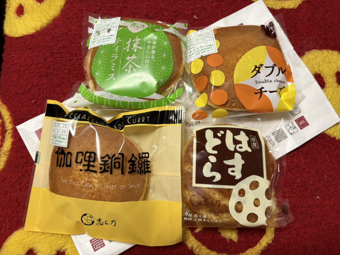 テレビでも購入されていた記憶のあるはすどらと抹茶ティラミスとはすどら。試食させていただいてとても美味しかったダブルチーズ。そして前々から気になっていた咖哩銅鑼。